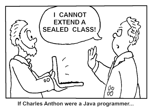 Now a word about programming. A class is one of the fundamental data types of the Java programming language. It is very common for programmers to create new classes by extending existing classes. In general, any class may either be extended or used directly. However, there are special types of classes: abstract classes must be extended; final classes may not be extended, and sealed classes can be extended, but only in a very tightly controlled manner.