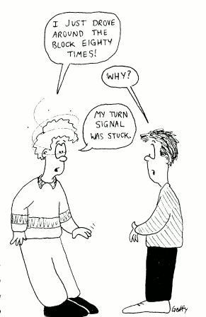 ![]() | This is an adaptation of an old joke I heard my dad tell once. I've heard others repeat it since then. That's the way it is with a lot of my cartoons from high school -- they were simply illustrations of my favorite jokes, regardless of whether I invented the joke myself or just passed it on to others. |