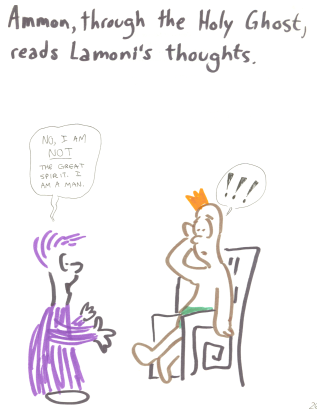 Ammon, through the Holy Ghost, reads Lamoni's thoughts.