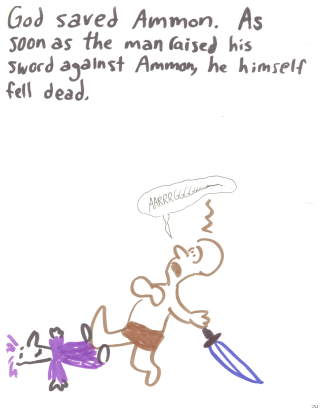 God saved Ammon. As soon as the man raised his sword against Ammon, he himself fell dead.