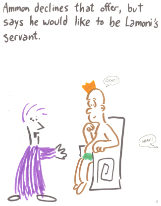 Ammon declines that offer, but says he would like to be Lamoni's servant.