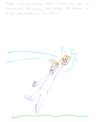 After a lot of practice, Heber became very good at throwing the ball, running and batting. He became one of the star players on his team.