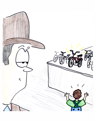 The auctioneer noticed that the boy was most interested in racer bicycles.