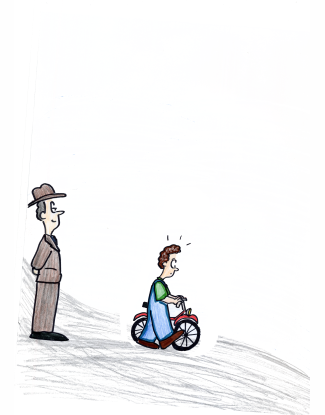 After they'd paid for the bike, the boy slowly started walking away with his new possession. He stopped suddenly.