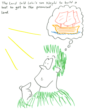 The Lord told Lehi's son Nephi to build a boat to get to the promised land.