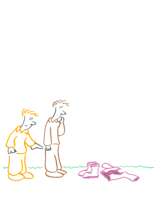 An older boy and his young companion were walking along a road that led through a field. They saw an old coat and a badly worn pair of men's shoes by the roadside.