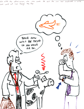 We called the veterinarian, who soon came. He said the cow had swallowed a wire and would not live through the day.