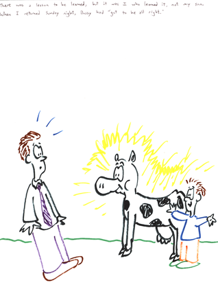 There was a lesson to be learned, but it was I who learned it, not my son. When I returned Sunday night, Bossy had