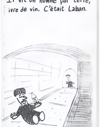 Il vit un homme par terre, ivre de vin. C'était Laban.