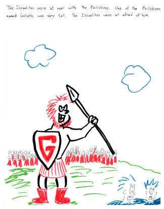 The Israelites were at war with the philistines. One of the Philistines, named Goliath, was very tall. The Israelites were all afraid of him.