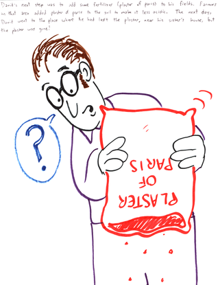 David's next step was to add some fertilizer (plaster of paris) to his fields. Farmers in that area added plaster of paris to the soil to make it less