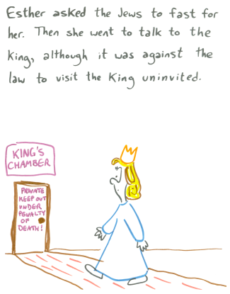 Esther asked the Jews to fast for her. Then she went to talk to the king, although it was against the law to visit the king uninvited.