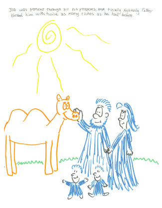 Job was patient through all his problems, and finally Heavenly Father blessed him with twice as many riches as he had before.