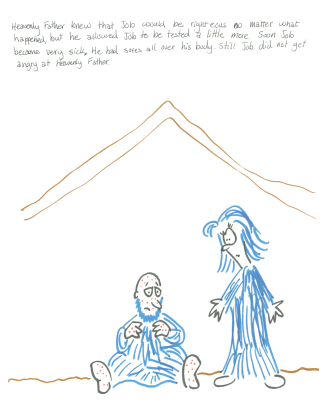 Heavenly Father knew that Job would be righteous no matter what happened, but He allowed Job to be tested a little more. Soon Job became very sick. He had sores all over his body. Still Job did not get angry at Heavenly Father.