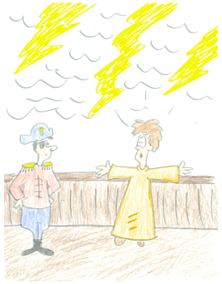 Jonah told the sailors that he was the reason for the storm, and that it would stop if they threw him overboard.