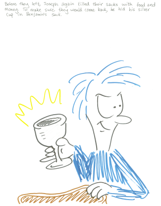 Before they left, Joseph again filled their sacks with food and money. To make sure they would come back, he hid his silver cup in Benjamin's sack.