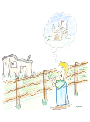 Over the fence from where Harold was playing, there were some tumbledown sheds that looked very exciting. Harold imagined that they were castles, just waiting to be explored!