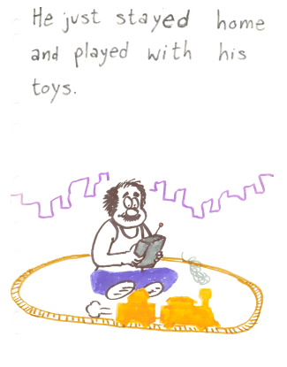 He just stayed home and played with his toys.