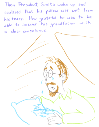 Then President Smith woke up and realized that his pillow was wet from his tears. How grateful he was to be able to answer his grandfather with a clear conscience.
