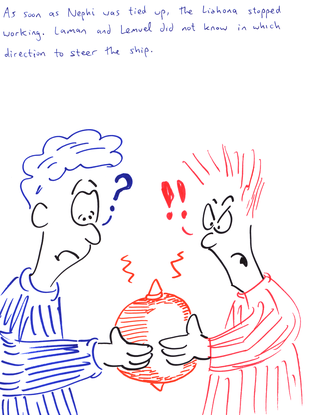 As soon as Nephi was tied up, the Liahona stopped working. Laman and Lemuel did not know in which direction to steer the ship.