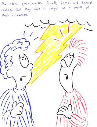 The storm grew worse. Finally Laman and Lemuel realized that they were in danger as a result of their wickedness.