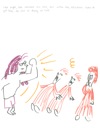 That night, she weaved his hair, but when the Philistines came to get him. He was as strong as ever.
