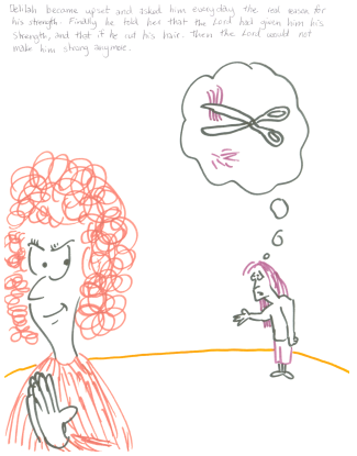 Delilah became upset and asked him everyday the real reason for his strength. Finally he told her that the Lord had given him his strength, and that if he cut his hair, then the Lord would not make him strong anymore.