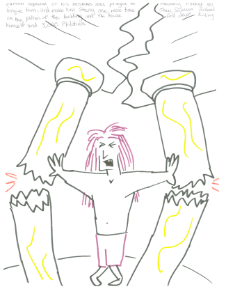 Samson repented of his mistakes and prayed to Heavenly Father to forgive him, and make him strong one more time. Then Samson pushed on the pillars of the building and the house fell down killing himself and 3,000 Philistines.