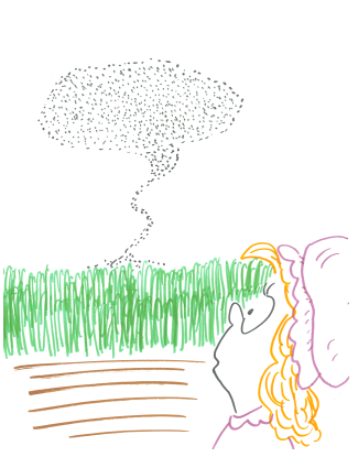 Just before it was time to harvest the wheat, a big cloud filled the sky. It was not a rain cloud, but a cloud of thousands of hungry black crickets. The crickets landed on the wheat and began to eat it.