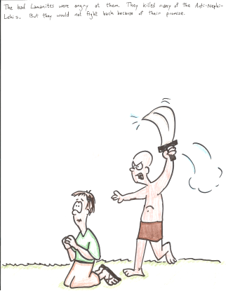 The bad Lamanites were angry with them. They killed many of the Anti-Nephi-Lehies. But they would not fight back because of their promise.