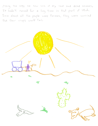Along the way, he saw lots of dry land and dead animals. It hadn't rained for a long time in that part of Utah. Since almost all the people were farmers, they were worried that their crops would fail.