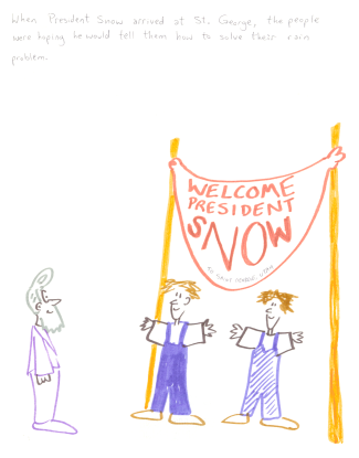 When President Snow arrived at St George, the people were hoping he would tell them how to solve their rain problem.
