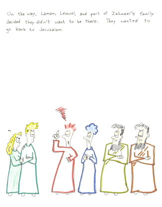 On the way, Laman and Lemuel, and part of Ishmael's family decided they didn't want to be there. They wanted to go back to Jerusalem.