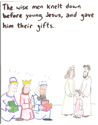 The wise men knelt down before young Jesus, and gave him their gifts.