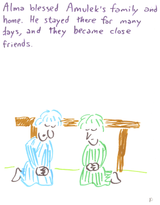 Alma blessed Amulek's family and home. He stayed there for many days, and they became close friends.