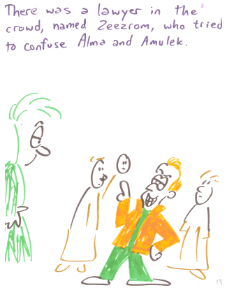 There was a lawyer in the crowd, named Zeezrom, who tried to confuse Alma and Amulek.